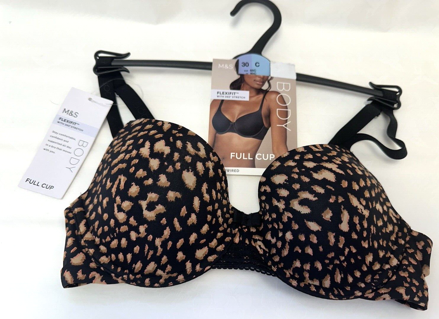 NEW! M&S Body UK30C black-mix animal print Flexifit underwired full cup bra