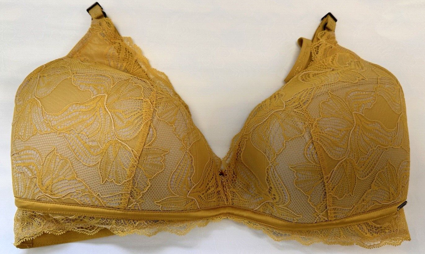 NEW! M&S Autograph UK18 yellow lace and satin non-wired padded plunge bralette