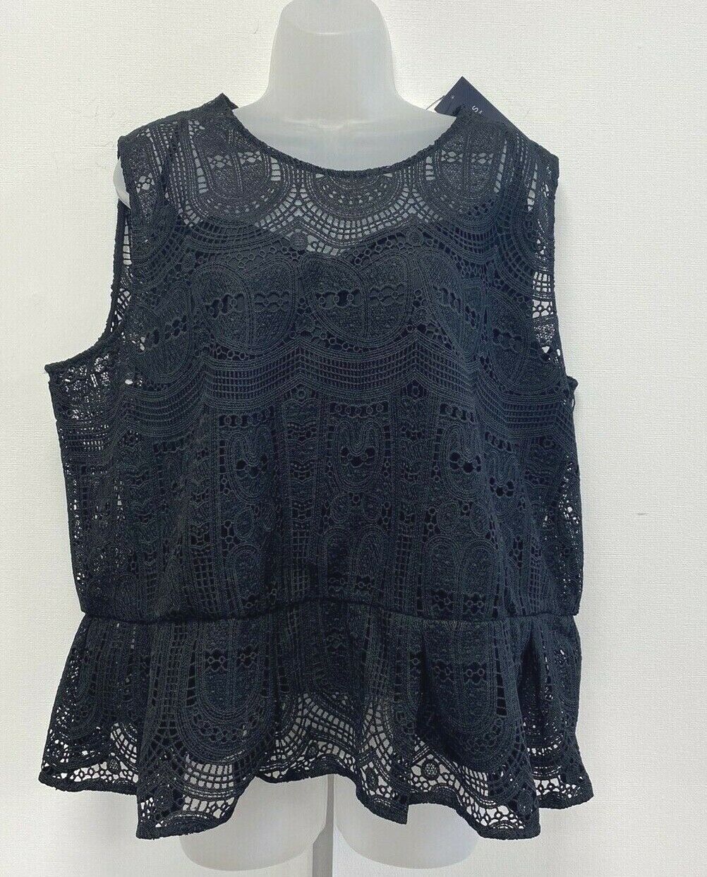 NEW! M&S UK24 Eur52 US20 black lace 2 piece lace peplum sleeveless top