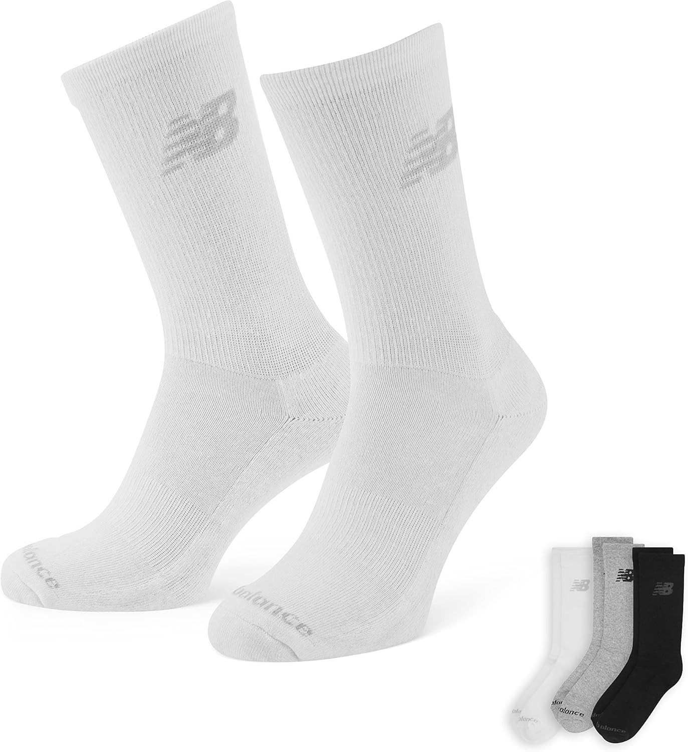 New Balance Unisex 3 Pack Crew Socks, White, M UK S, Assorted