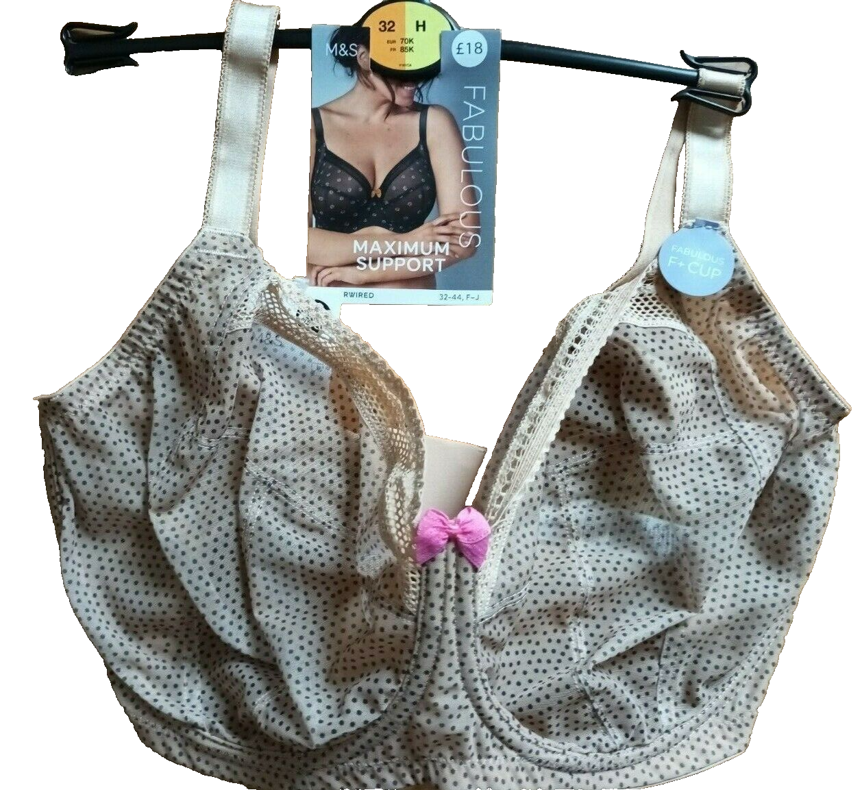 M&S Fabulous UK 32H Fudge Underwired Polka Dot Maximum Support Full Cup Bra