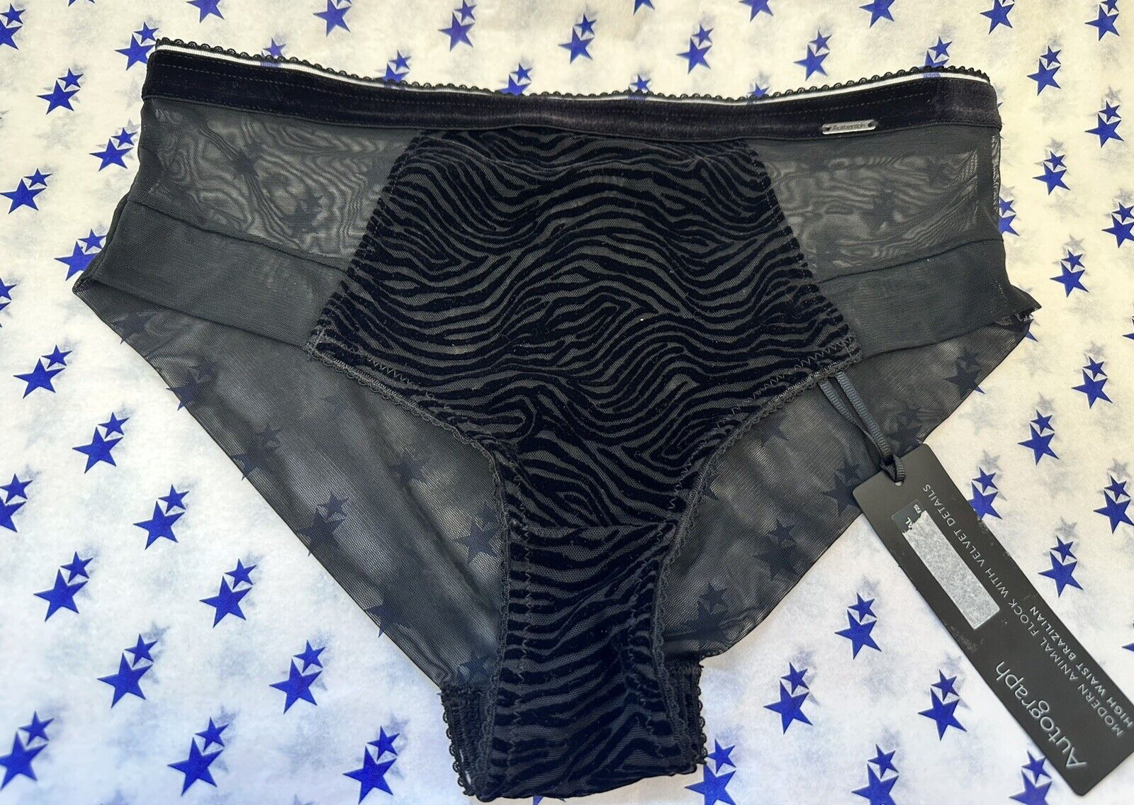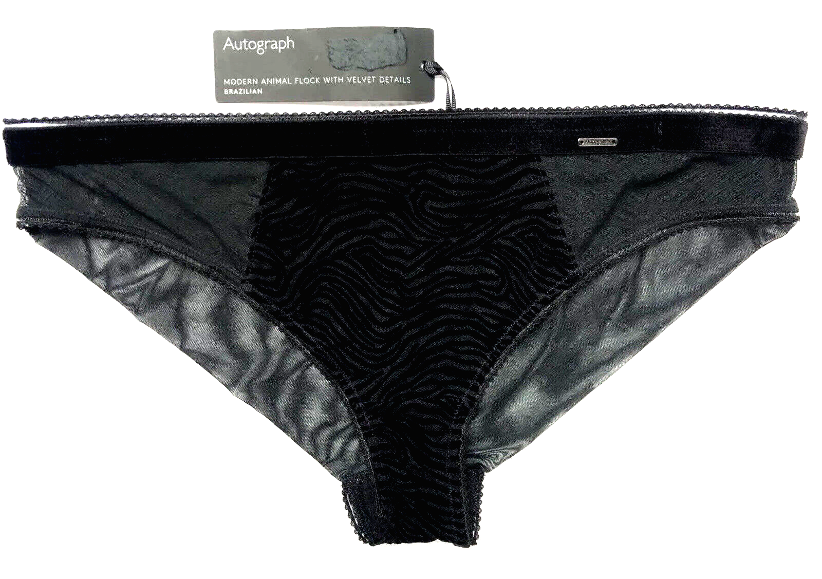 NEW! M&S Autograph UK6 black velvet animal flock high waist Brazilian knickers