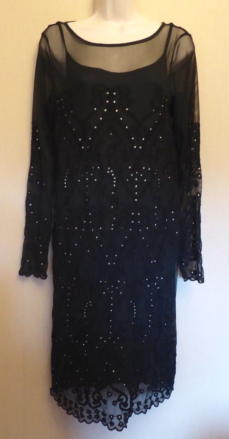 NEW! M&S Per Una UK10 black stretch mesh/lace long-sleeved 2-piece dress