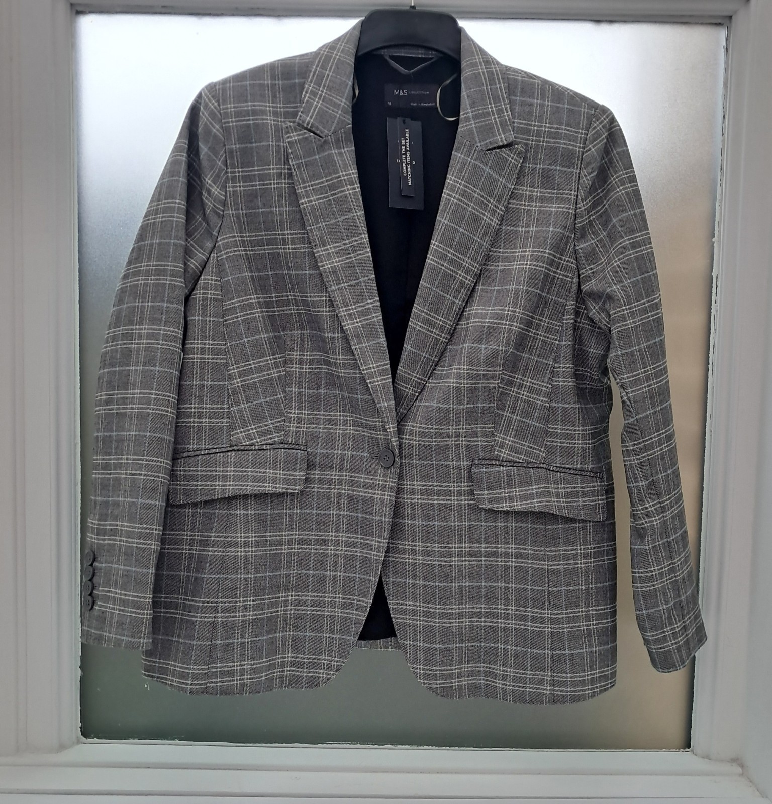 M&S Womens Jacket UK18 Grey Mix Check Tailored Fit T59 1566J/04135 NWT
