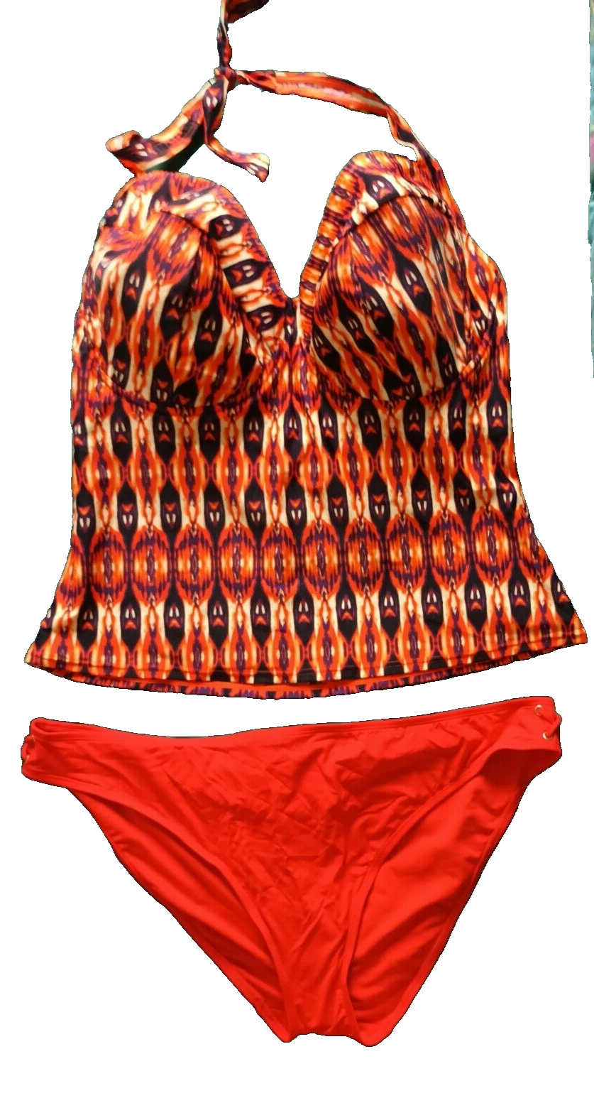 Simply Yours/M&S UK 46E/24 Multi Tribal Print Padded U/W Halterneck Tankini Set