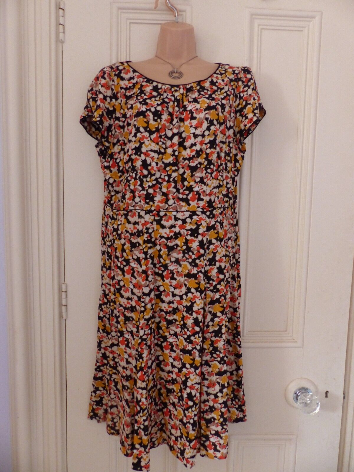 M&S Woman UK16 fit and flare dress black, orange, beige patterns BNWT RRP £39.50