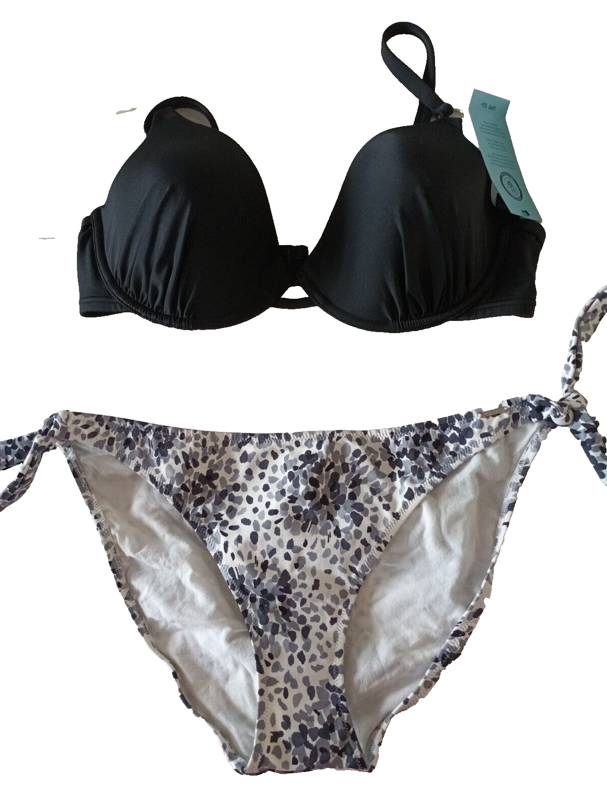 Boux Avenue/M&S 2UK 36D/18 Black Mix Animal Print U/W Padded Tie Side Bikini Set