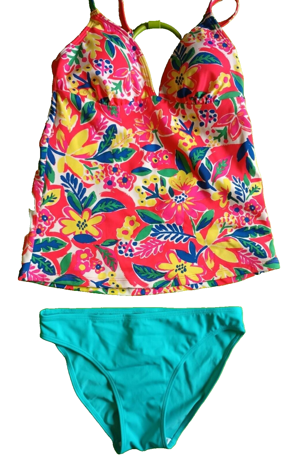 M&S/Ocean Club UK 8 Multicoloured Floral Tankini Brief Set With Removable Pads