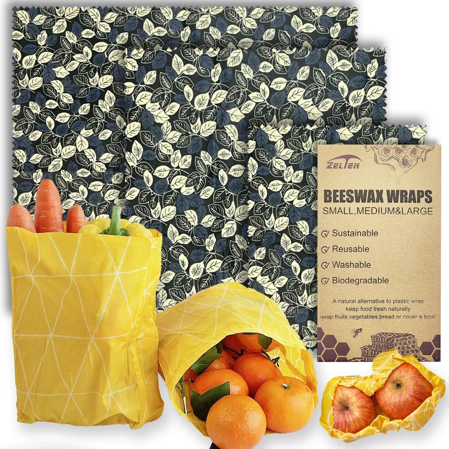 Beeswax Reusable Food Wraps - (3 Packs, 3 Sizes S,M,L) Plastic and Silicone Fre