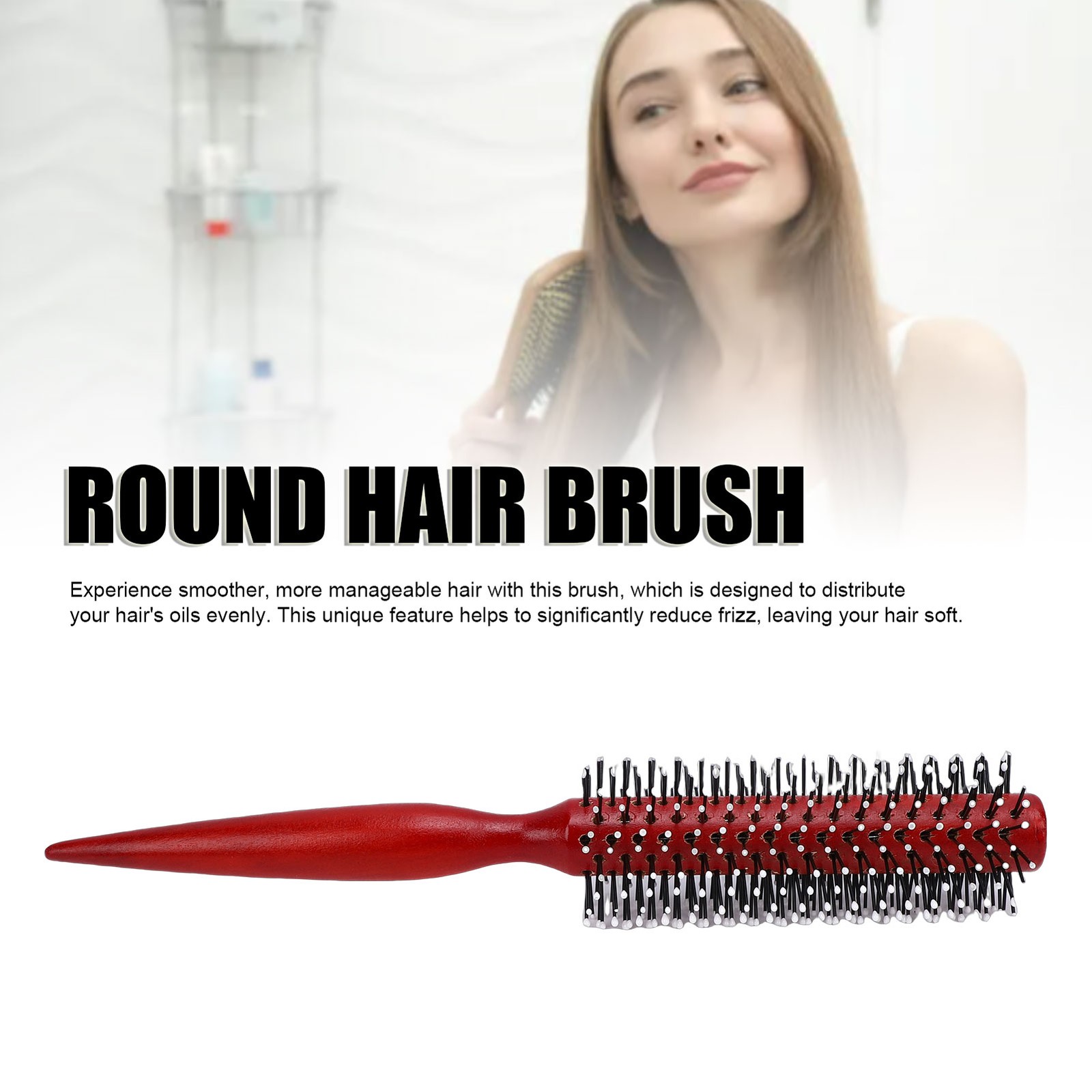 M 8.9X1.6in Round Styling Hair Brush Anti Static Handle Reduce Frizz Wooden SG