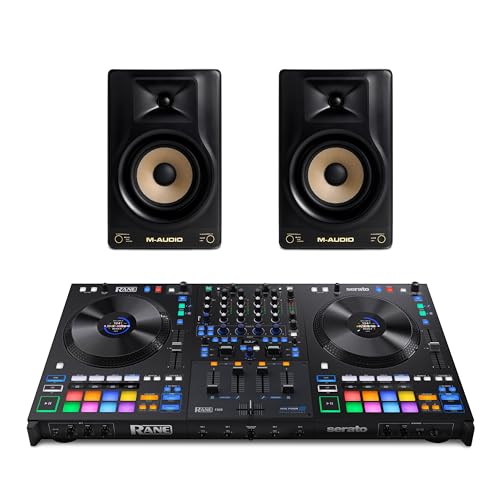 Rane FOUR DJ Controller and M-AUDIO Forty Sixty Pair Studio Monitors for Studio Recording, Music Production, Podcasting, Streaming