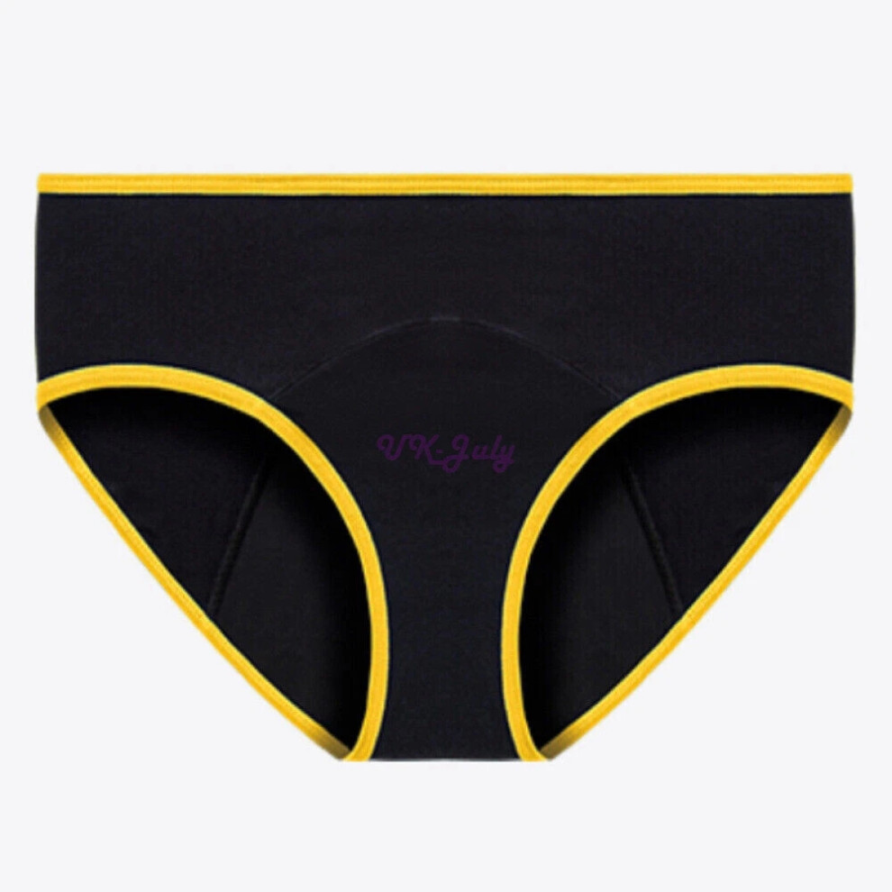 (6# Black & Yellow Breathable Stretch Seamless Knickers, M) Ladies Menstrual Panties Leak Proof Underwear Period Brief Physiological Pant New