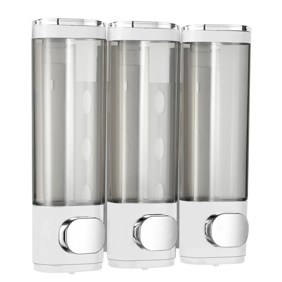 Ribech Soap Dispenser, 3 Chamber 300mL Shampoo and Conditioner Dispenser Pump, Wall Mounted Storage Container for Bathroom, Kitchen, Hotel (White, Set