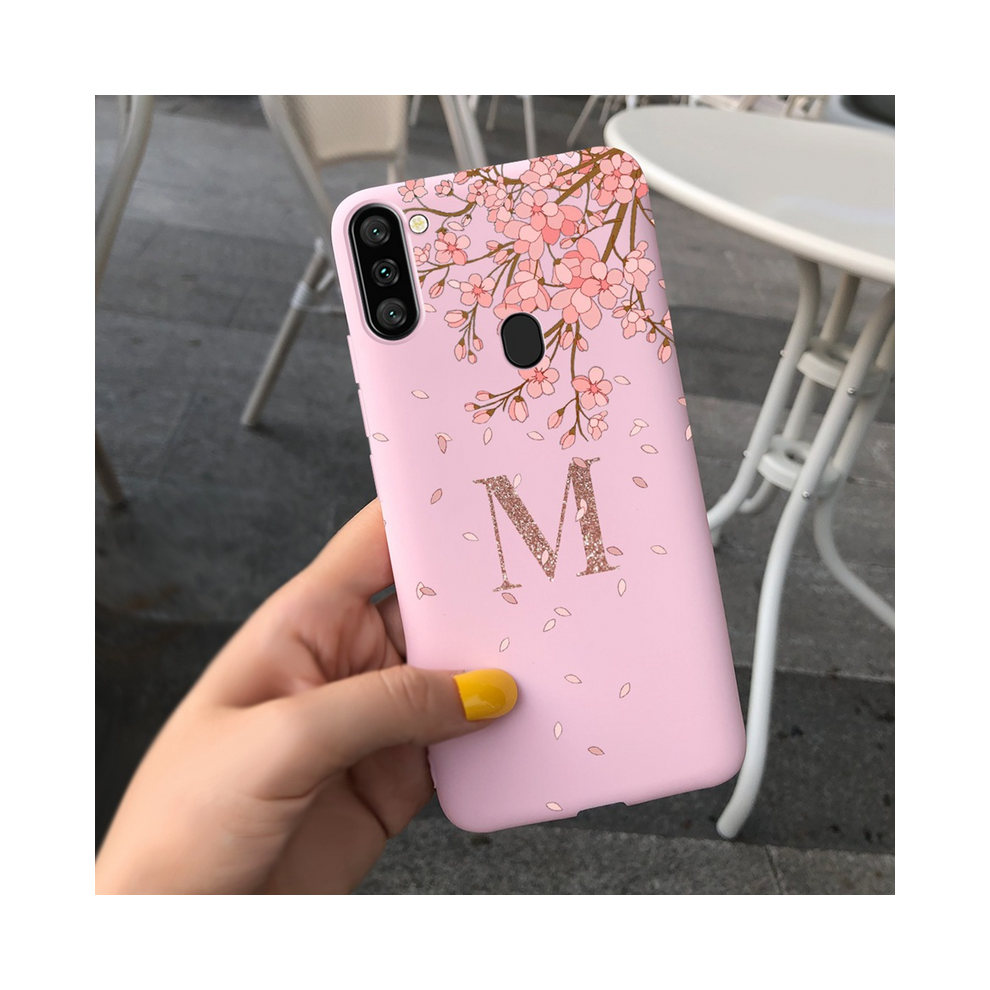 (pink- J, For Galaxy M11) Cute Letters Phone Case For Samsung Galaxy A11 Cov