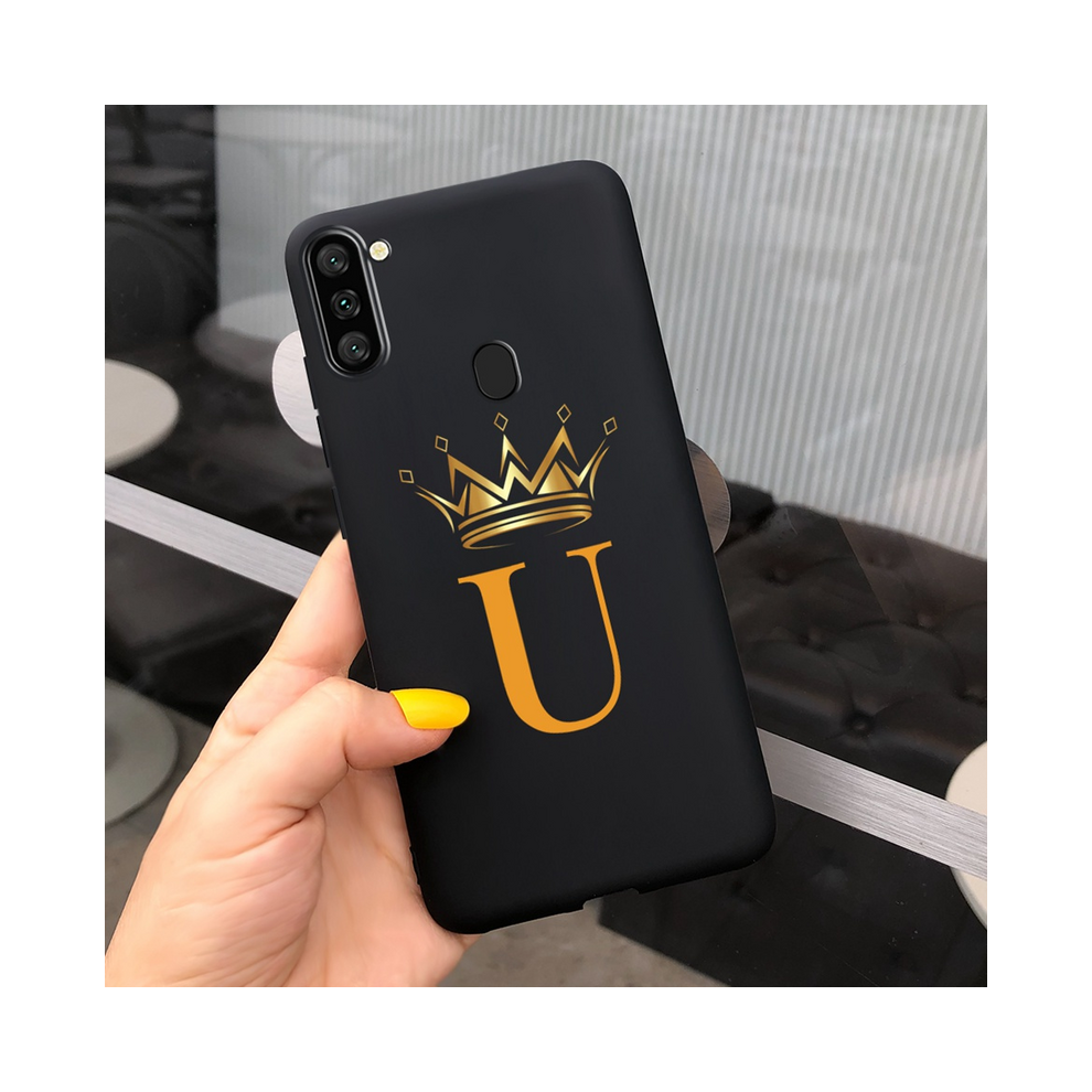 (Black-U, For Galaxy M11) Cute Letters Phone Case For Samsung Galaxy A11 Cov