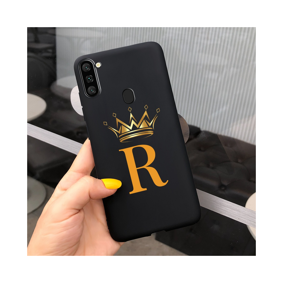 (Black-R, For Galaxy M11) Cute Letters Phone Case For Samsung Galaxy A11 Cov