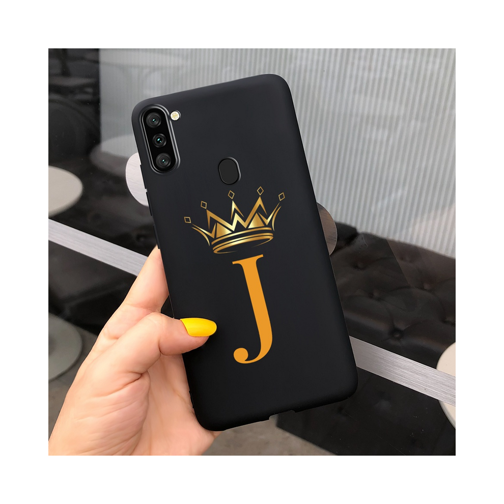(Black-J, For Galaxy M11) Cute Letters Phone Case For Samsung Galaxy A11 Cov