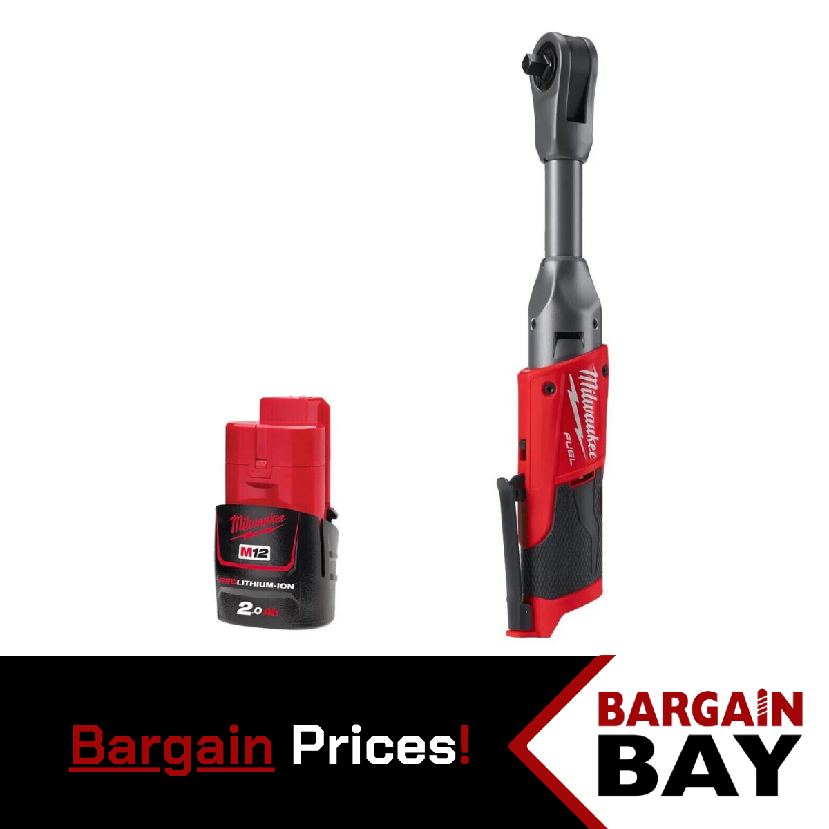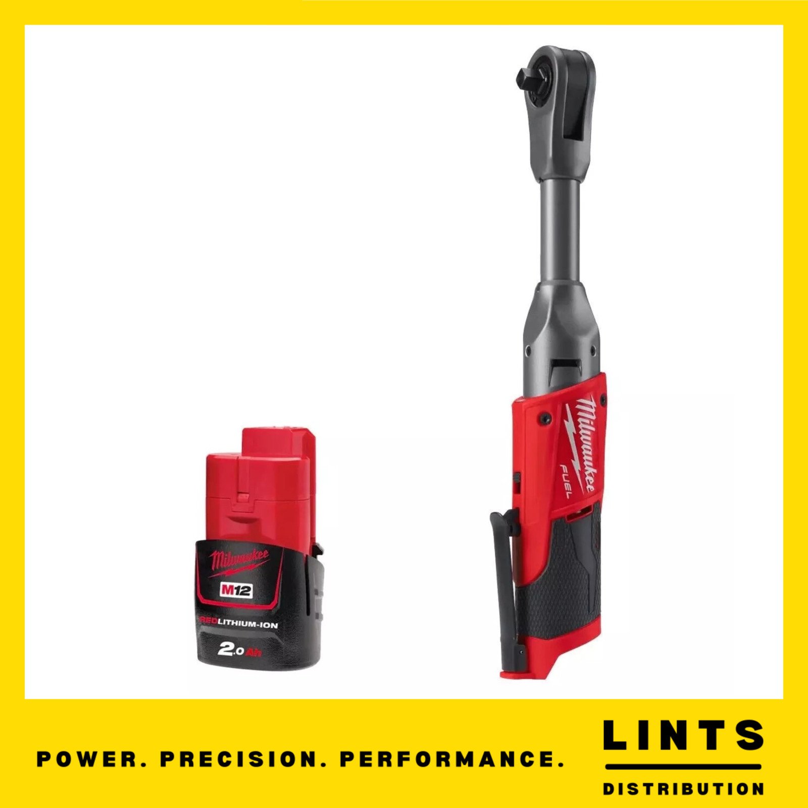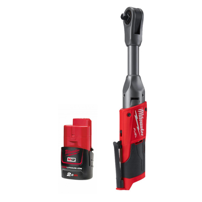 MILWAUKEE M12FIR38LR-0 12V FUEL LONG REACH 3/8" RATCHET 1/4" ADAPTOR 2AH BATTERY