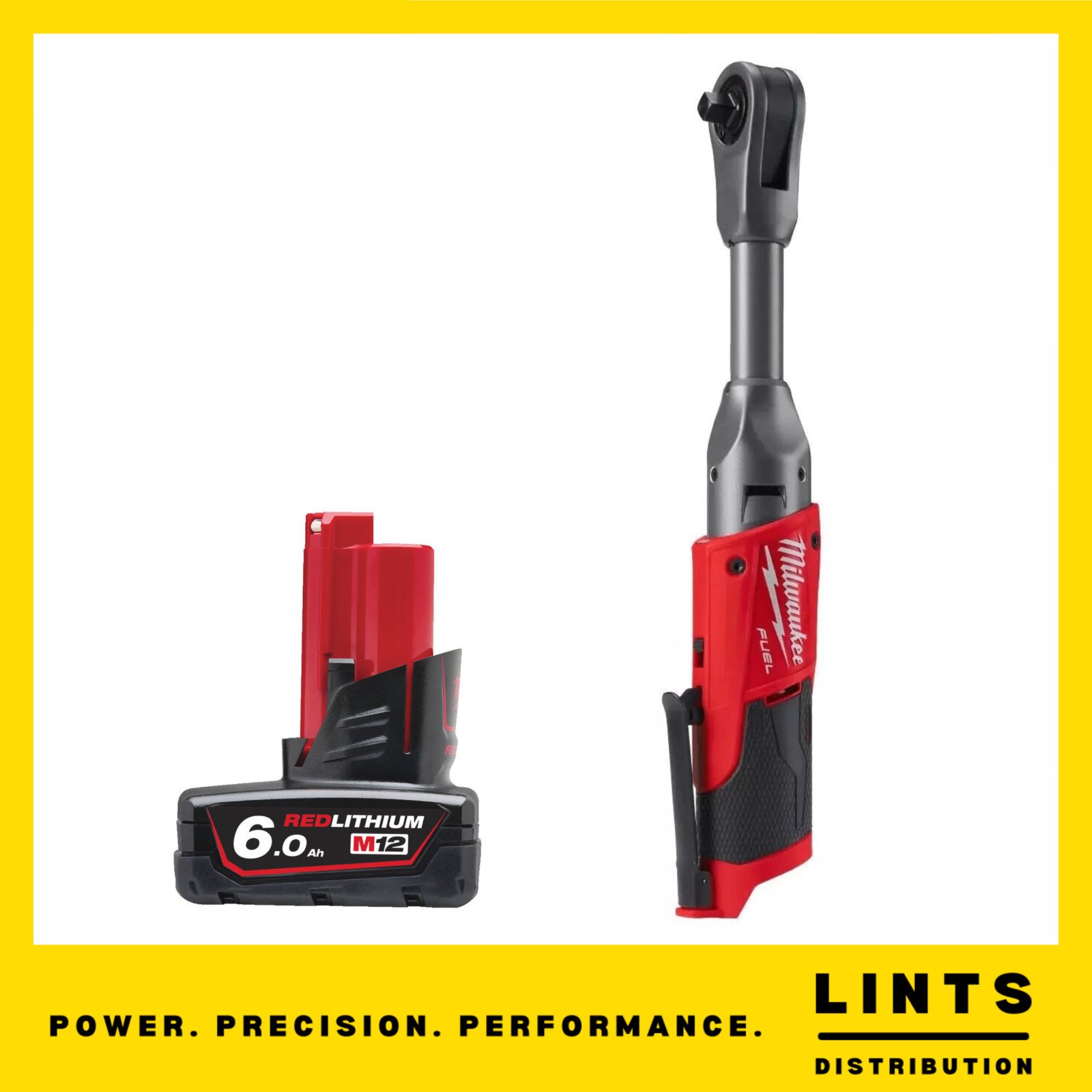 MILWAUKEE M12FIR38LR-0 12V FUEL LONG REACH 3/8" RATCHET 1/4" ADAPTOR 6AH BATTERY
