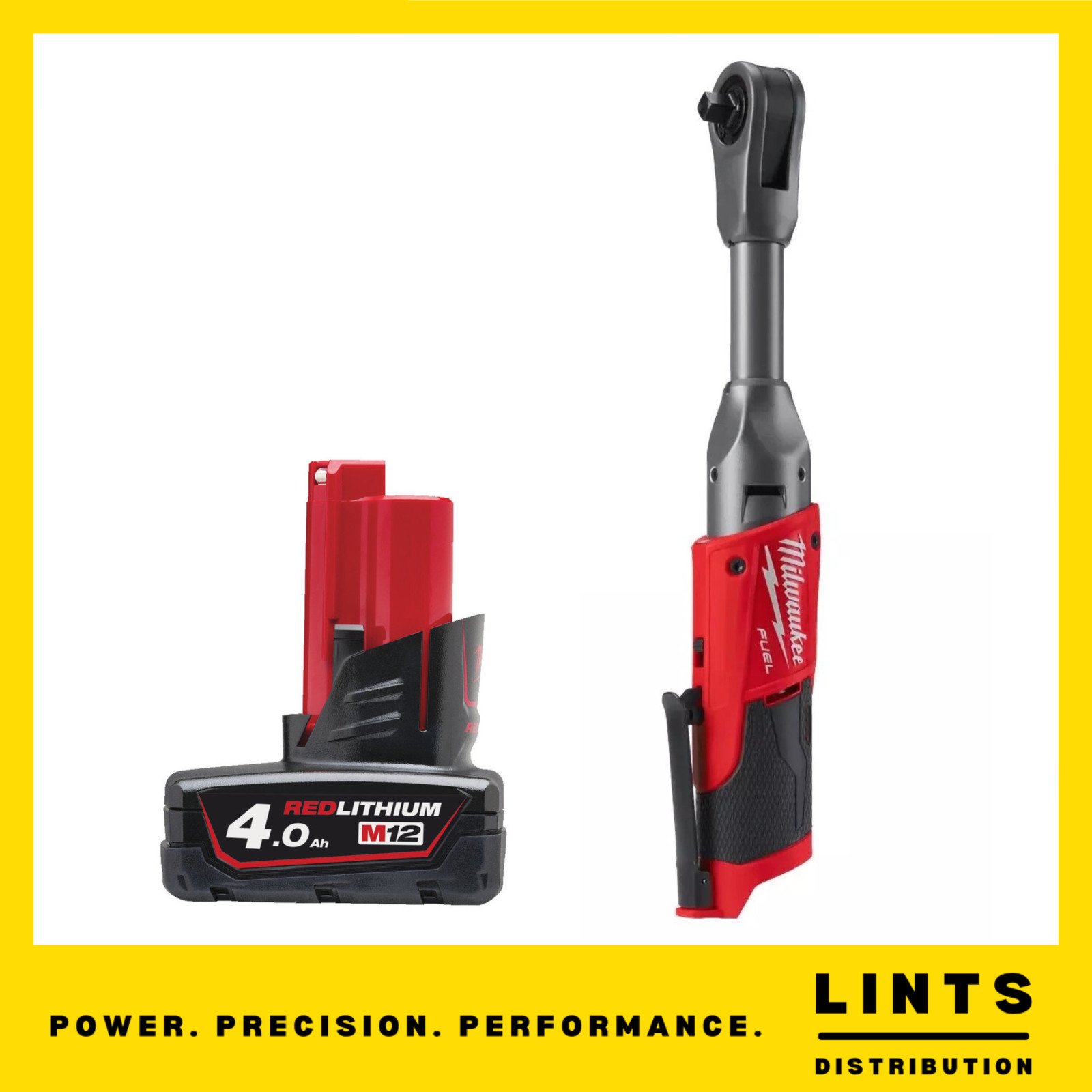 MILWAUKEE M12FHIR38LR 12V FUEL LONG REACH 3/8" RATCHET 1/4" ADAPTOR 4AH BATTERY