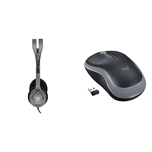 Logitech H110 Wired Headset, Stereo Headphones with Noise-Cancelling Microphone, 3.5-mm Dual Audio Jack, PC/Mac/Laptop - Black & M185 Wireless Mouse, 2.4GHz with USB Mini Receiver, Grey