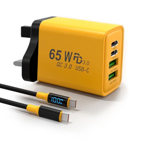 65W USB C Charger, Mac Book Charger,4 Port Multi-Device Fast Charging, Compact GaN Power Adapter, Digital display Cable, for iPhone 17 16 15 Series, Laptop, Galaxy, Pixel, Lenovo, Dell, HP, iPad,etc.