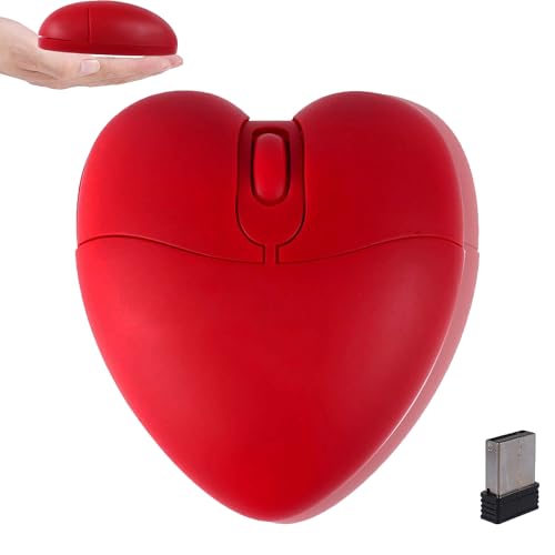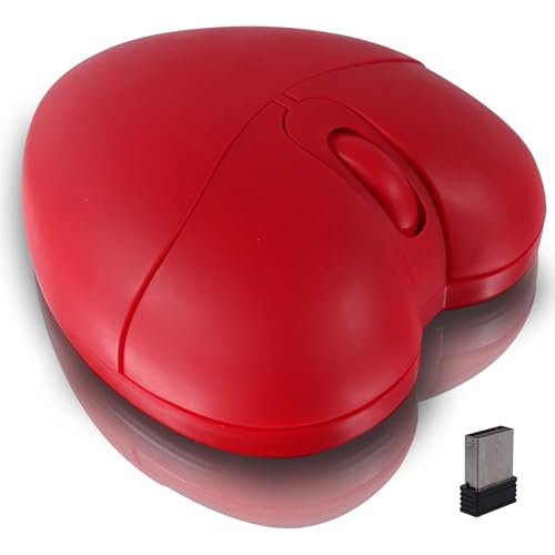 Wireless Bluetooth Mouse Cute Heart Shaped Bluetooth + 2.4GHz Dual-mode Lightweight Portable Silent Mice with Precise Tracking for Laptop Computer Tablet Mac MacBook Desktop Kids Girls Women Gift(Red)