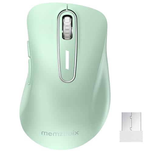 memzuoix 2.4G Wireless Mouse, 1400 DPI Mobile Optical Cordless with USB Receiver, Portable Computer Mice Wireless for Laptop, PC, Desktop, MacBook, 5 Buttons (Light Green)