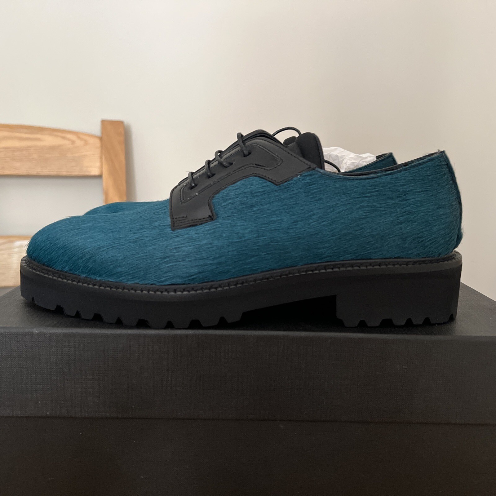 Paul Smith Womens Faux Fur Lace Up Mac Shoe Colour Petrol Green Size UK 6 EU 39