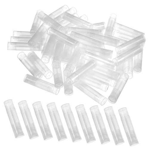 COLLBATH 50pcs Lip Balm Tube Gloss Lips Cosmetic Balm Stick Bulk Storage Container with Lid Face Wist-up Travel Multipack Size Refillable Empty Tubes Large Color Small Mini Hydrate Makeup