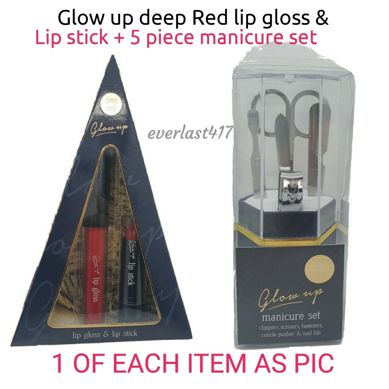Glow up deep Red Lip gloss&lip stick+ 5 piece manicure set 1 OF EACH item as Pic