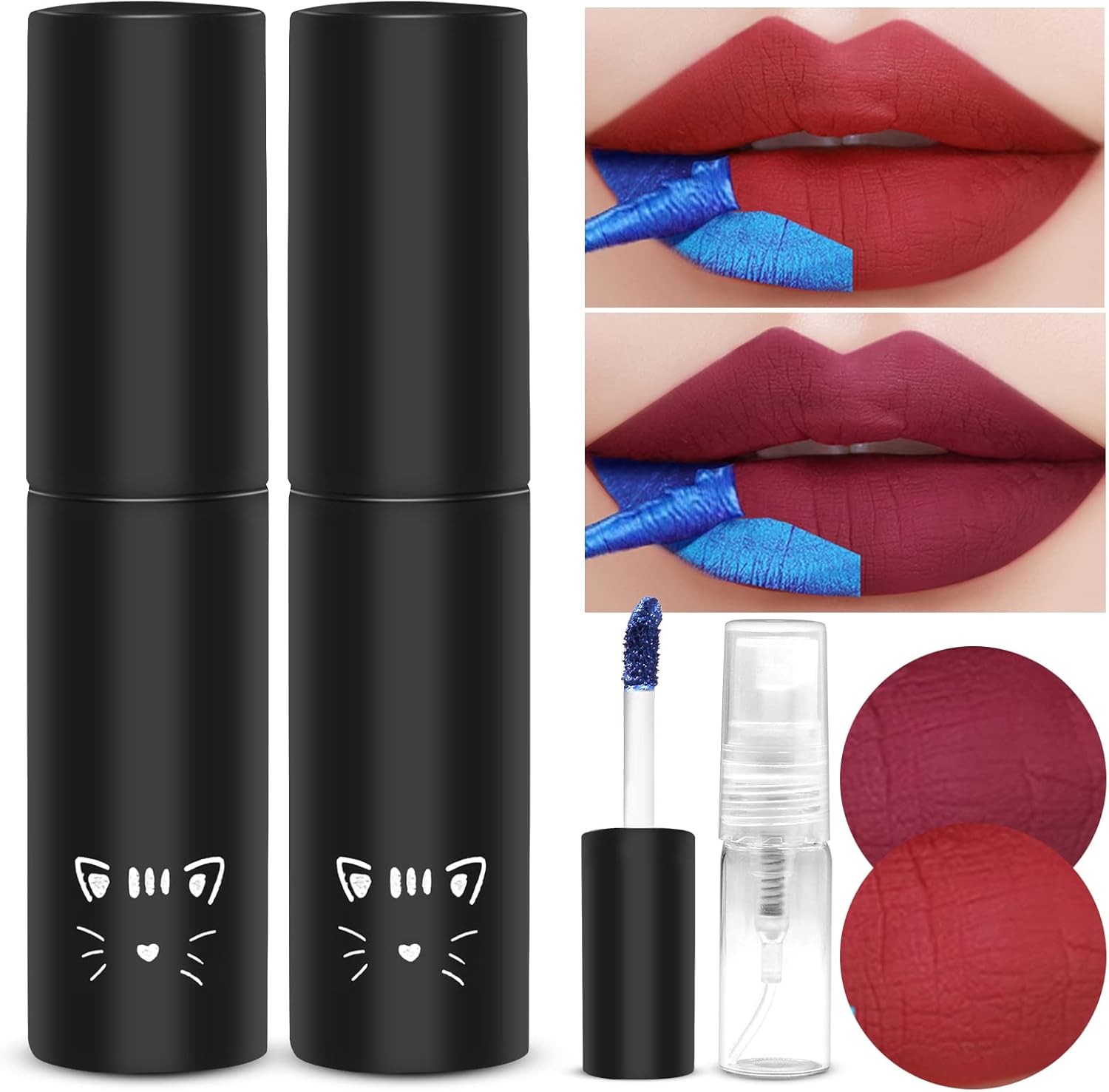 Lip Stain 2 Colour, Peel Off Lip Stain Lip Tint, Long Lasting Waterproof Liquid
