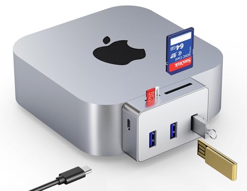 Compact Docking Station for Mac mini M4 – 10Gbps USB-C, 3× USB 3.0 Ports, SD/TF Card Reader – Sleek Mac mini M4 Hub for Expanded Connectivity