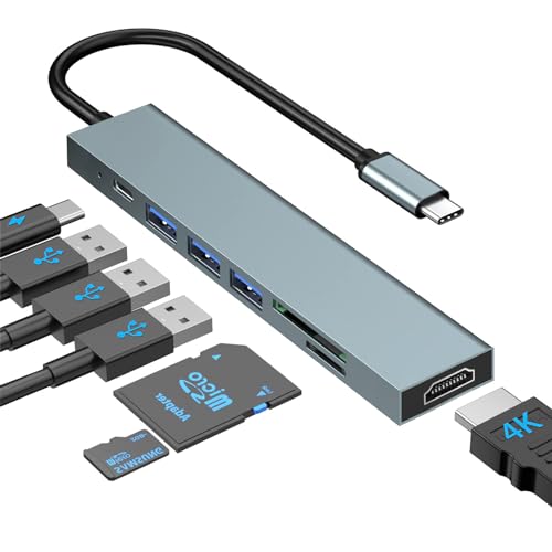 USB C Hub 7 in1 Multiport Adapter with USB-C to 4K HDMI, SD/TF Card Reader/1*USB 3.1/2*USB 2.0/1*Type C 100W Power Delivery, Compatible with MacBook Pro 2022/2021/2020/2019, Surface Book More