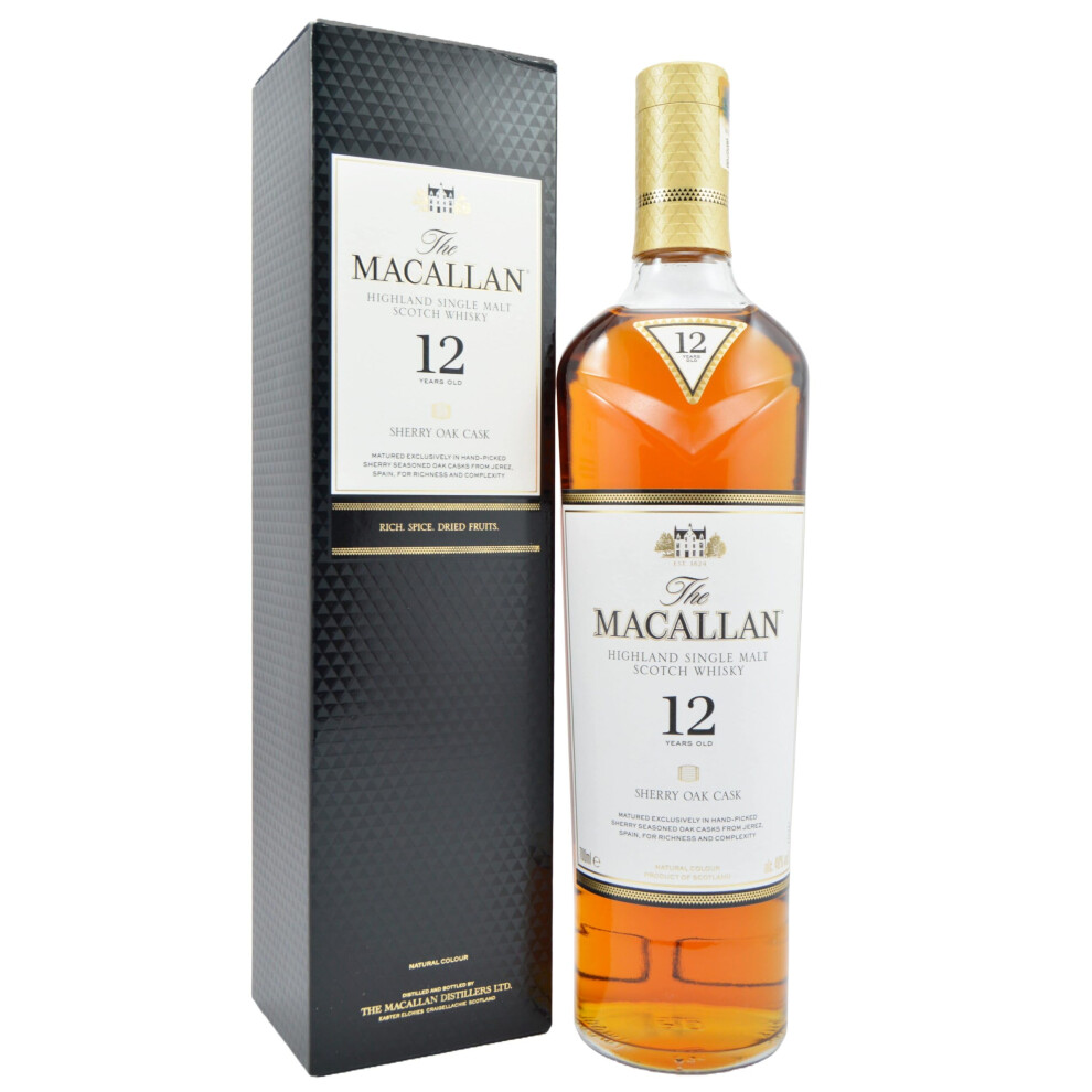The Macallan 12 Years Old Sherry Oak | Scotch | Highland | Single Malt Whisky | Dried Fruit, Oak Spice and Nutmeg | European Oak Sherry Seasoned Casks | 40 Percent ABV | 70 cl (Package may vary)