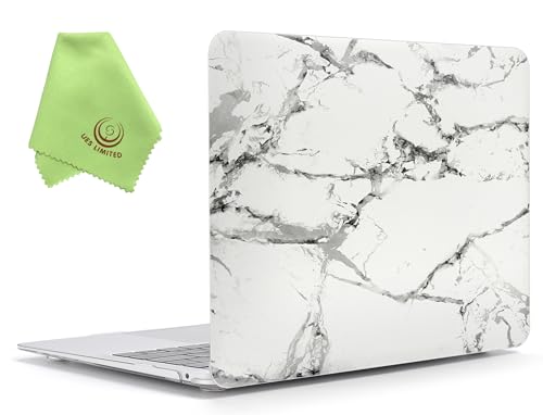 UESWILL for MacBook Air 13 inch M4 M3 M2 Case 2022-2025 Model A3240 A3113 A2681 with 13.6" Liquid Retina Display & Touch ID, Marble Pattern Hard Shell Cover + Microfiber Cloth, White/Grey