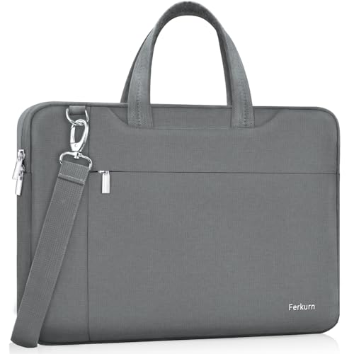 Ferkurn Laptop Bag Case for Women Men, Laptop Sleeve Computer Bag Briefcase with Shoulder Compatible with Macbook Pro/Air, HP Chromebook, XPS, ASUS, Acer, Samsung, Grey, 15 15.6 16 Inch