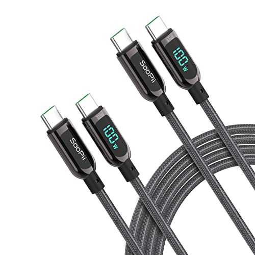 SOOPII USB C to USB C Cable,[3M,2 Pack],Nylon Braided Type-C Cable,100W PD Fast Charging Cable with LED Display for lPhone 15/15 Pro,lPad Air, MacBook Pro,Galaxy S23/S22 (Grey)