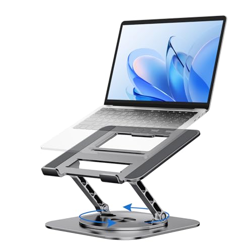 MCHOSE Laptop Stand for Desk, Ergonomic Adjustable Laptop Stand with 360° Rotation, Ventilated Aluminum Riser, Foldable Laptop Holder Compatible with MacBook Air, Dell XPS, 10-17.3" Laptops, Grey