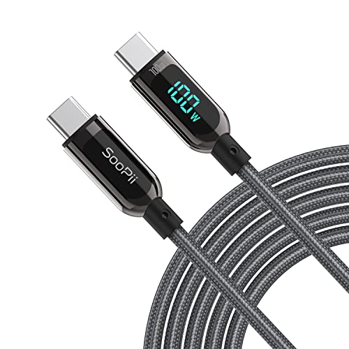 SOOPII 100W USB C to USB C Cable,Nylon Braided Type-C Cable,PD Fast Charging Cable with LED Display for lPhone 15/15 Pro,lPad Air, MacBook Pro,Galaxy S23/S22 (0.3M,Grey)