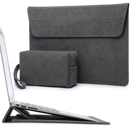 HYZUO 13 Inch Laptop Sleeve with Adjustable Stand for MacBook Air 13 M4 M3 M2 M1 2025-2018, MacBook Pro 13 M2 M1 2025-2016, Surface Pro, iPad Pro/Air 13 M4 M3 M2, XPS 13, with Pouch, Space Grey