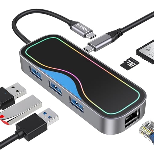 8 in 1 USB C Hub, USB Type C Adapter with 4K HDMI, RJ45 Gigabit Ethernet Port, 3 USB 3.0 Ports, SD/Micro SD Card Reader, Type C PD, for MacBook PRO/Air, iPad PRO and More