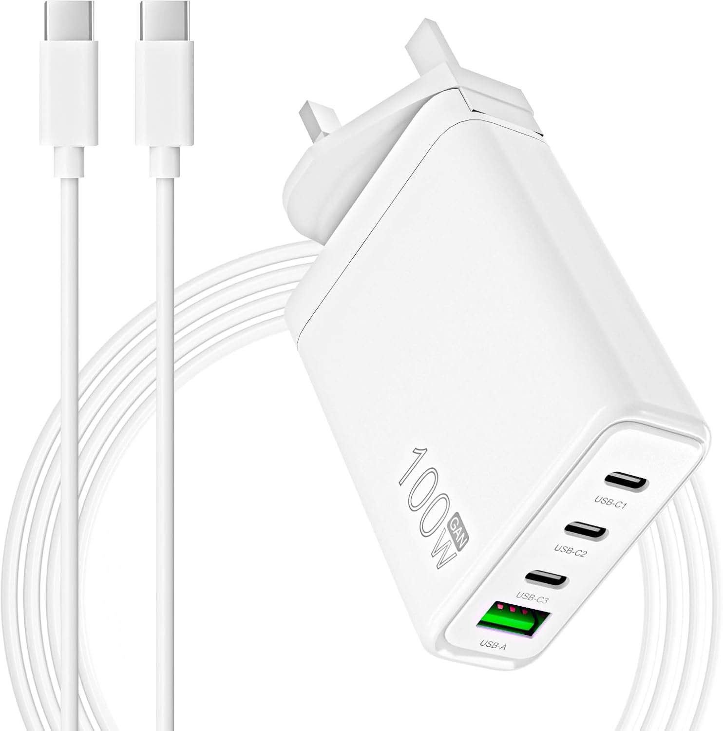 100W USB C Plug Gan Wall Charger 4-Port Laptop Charger Compatible with Macbook P