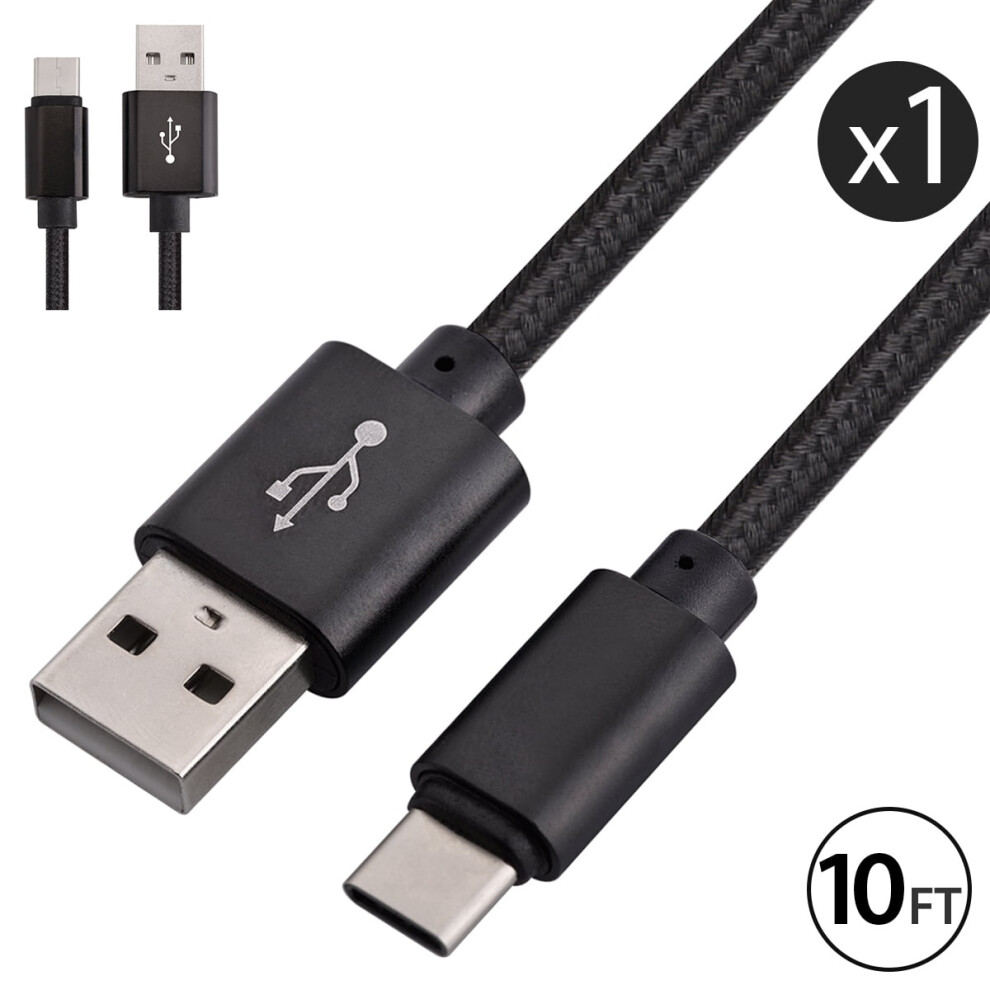 FREEDOMTECH 10ft USB C to A Cable, Nylon Braided Fast Charger Cord compatible with Samsung Galaxy Note 8/S8/S8+, Apple New MacBook, Nexus 6P/5X,