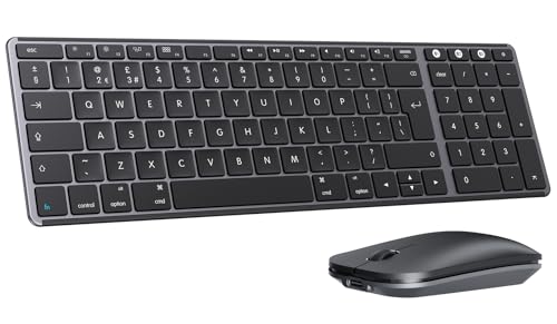 seenda SKM64-2 Bluetooth Keyboard and Mouse for Mac, Multi-Device Rechargeable Slim Keyboard and Mouse Set Compact with Number Pad, Specially for MacBook Pro/Air, iPad, iMac - Space Gray