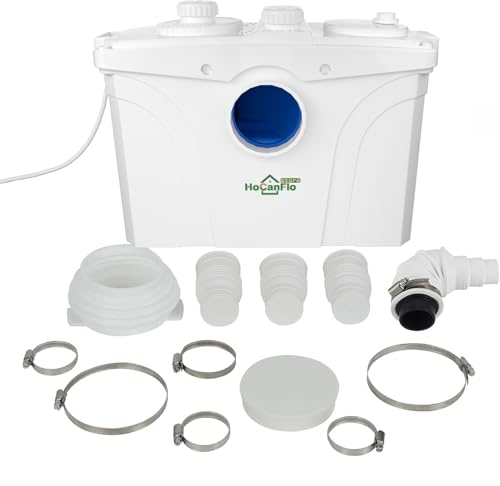 Hocanflo 500W Sewerage Pump Macerator Toilet, Waste Water Pump for WC Toilets, Shower, washbasin, Washing Machine, bathtubs, dishwashers, 4 inlets