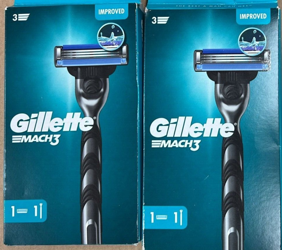 Pack of 2 x 3x Mens Gillette Mach 3 Razor Handle + 1 Shaving Blade Head Precisio
