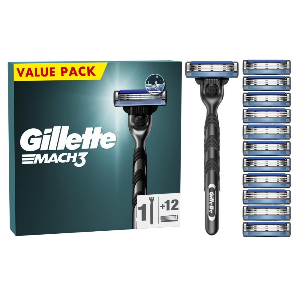 Gillette Mach3 Men's Razor + 12 Razor Blade Refills, 3 Blades for a Smooth Shave, Fits All Mach3 Handles