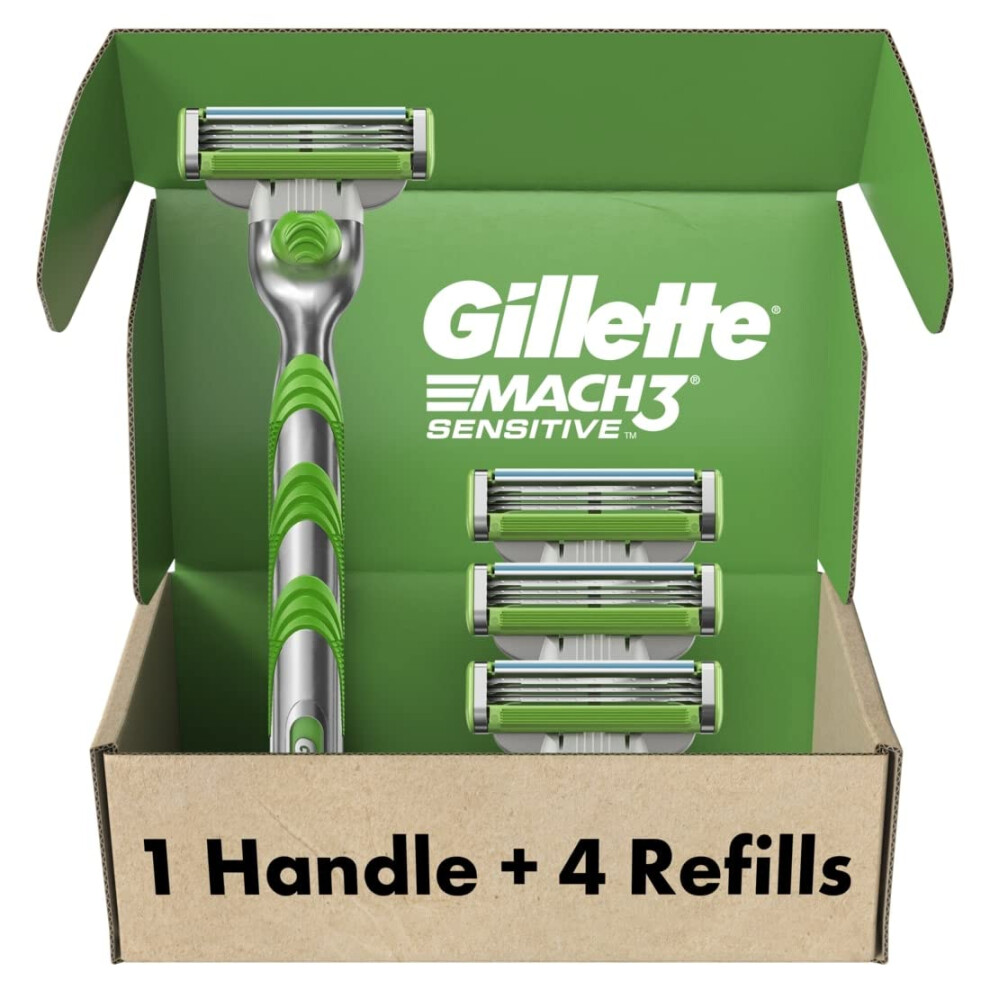 Gillette Mach3 Sensitive Razors for Men 1 Razor 5 Razor Blade Refills Designed for Sensitive Skin