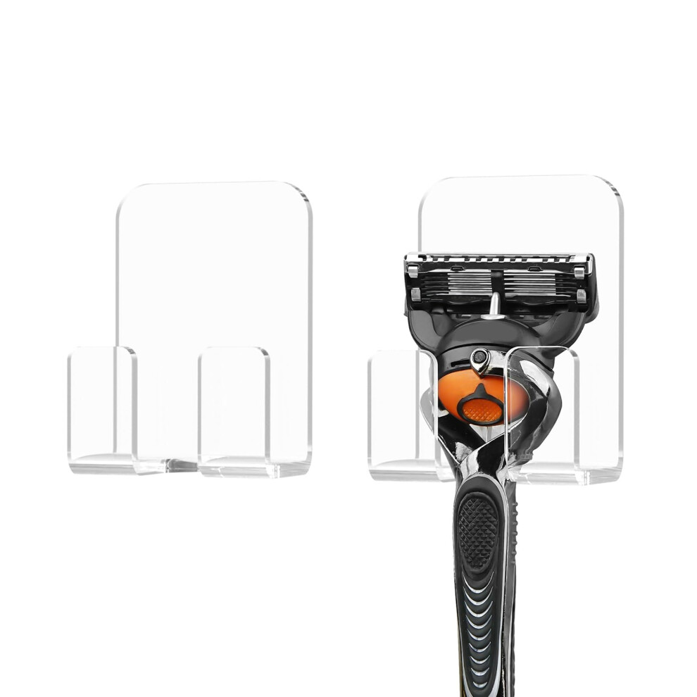 LUEXBOX 2 Pcs Acrylic Razor Holders for Shower Wall Self Adhesive Waterproof Razor Rack for Bathroom Compatible with Fusion 5 Proglide Mach 3 Clas